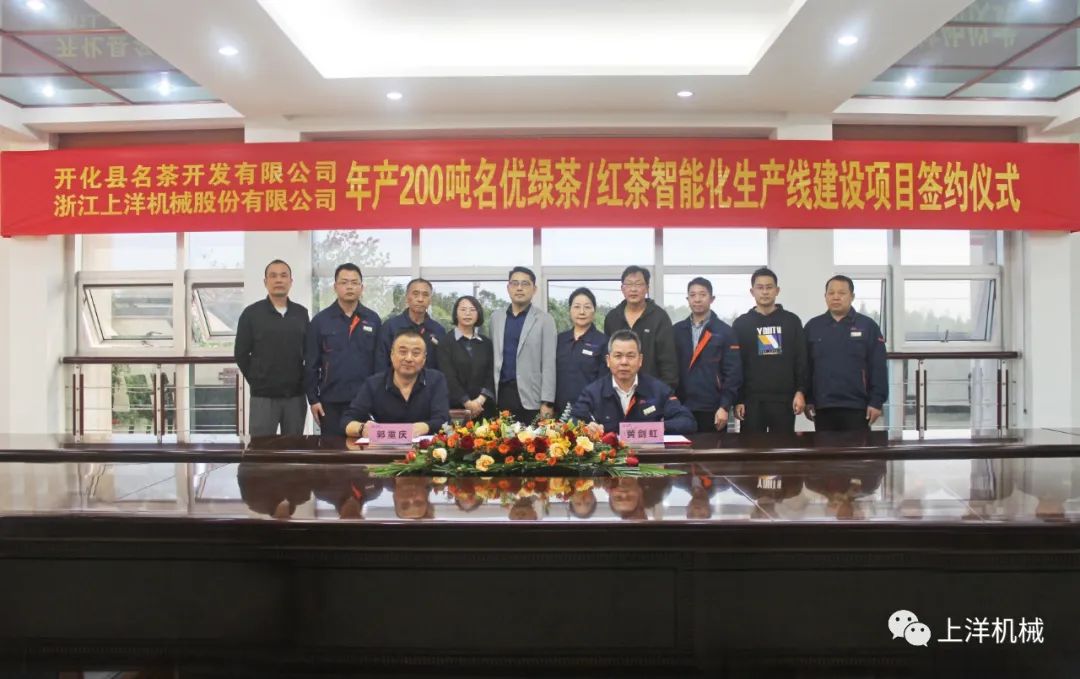 10月24日,開化名茶開發(fā)有限公司與上洋機械正式簽約“年產200噸名優(yōu)綠茶/紅茶智能化生產線”建設項目。