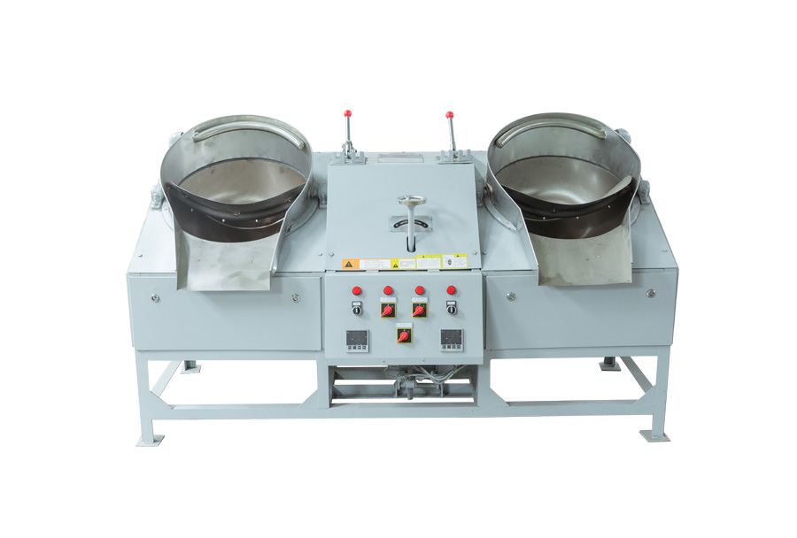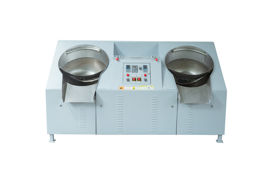 (2)、雙鍋曲毫炒干機適用于各類卷曲型、球型名優(yōu)茶的做型炒制作業(yè)。目前市場上有50、60兩種鑄鐵鍋和壓制鍋兩種,壓制鍋外形更好,但在加熱后易變形,引起抄板和鍋子卡死或間隙變大,從而增加碎茶或炒制茶葉外形不緊,鑄鐵鍋不存在這種現(xiàn)象,我公司一直使用鑄鐵鍋,50型采用掛擋調(diào)速、60型采用變頻調(diào)速。